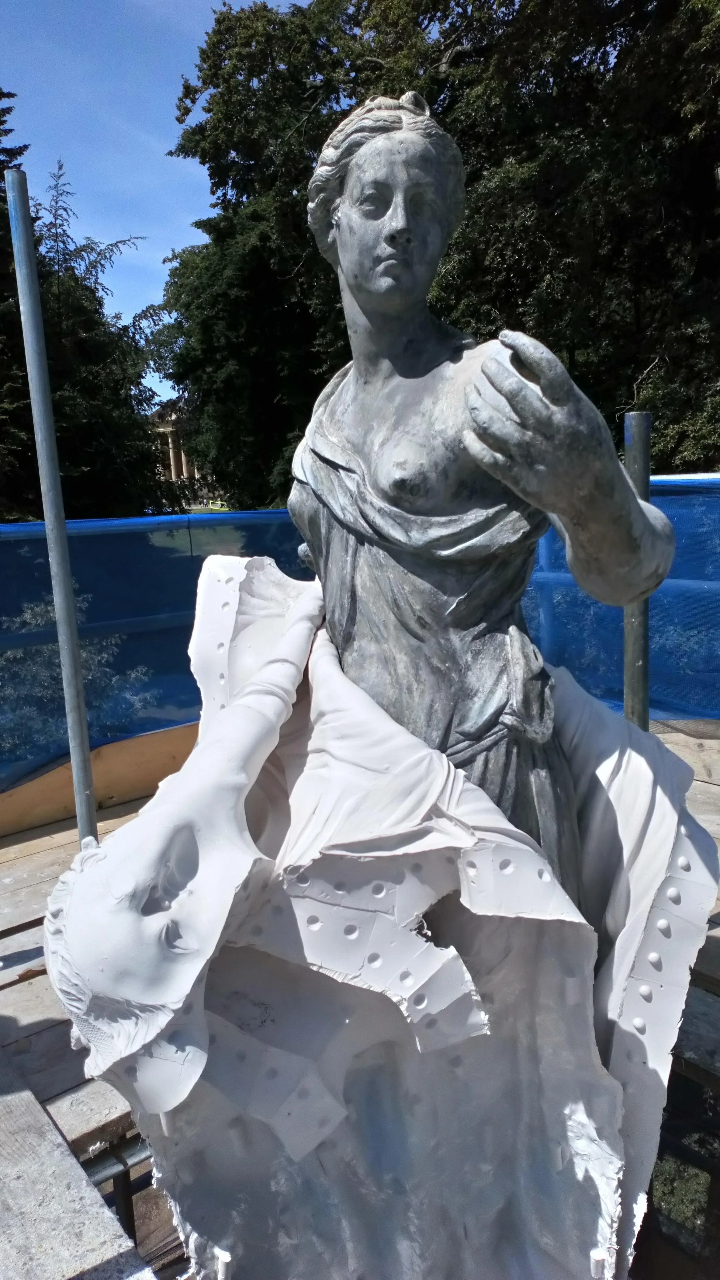 Moulding of “Heroic Poetry” statue at the top of the Grenville Column at Stowe Gardens. This was one of nine sculptures of Muses moulded as part of a restoration project for Cliveden Conservation.