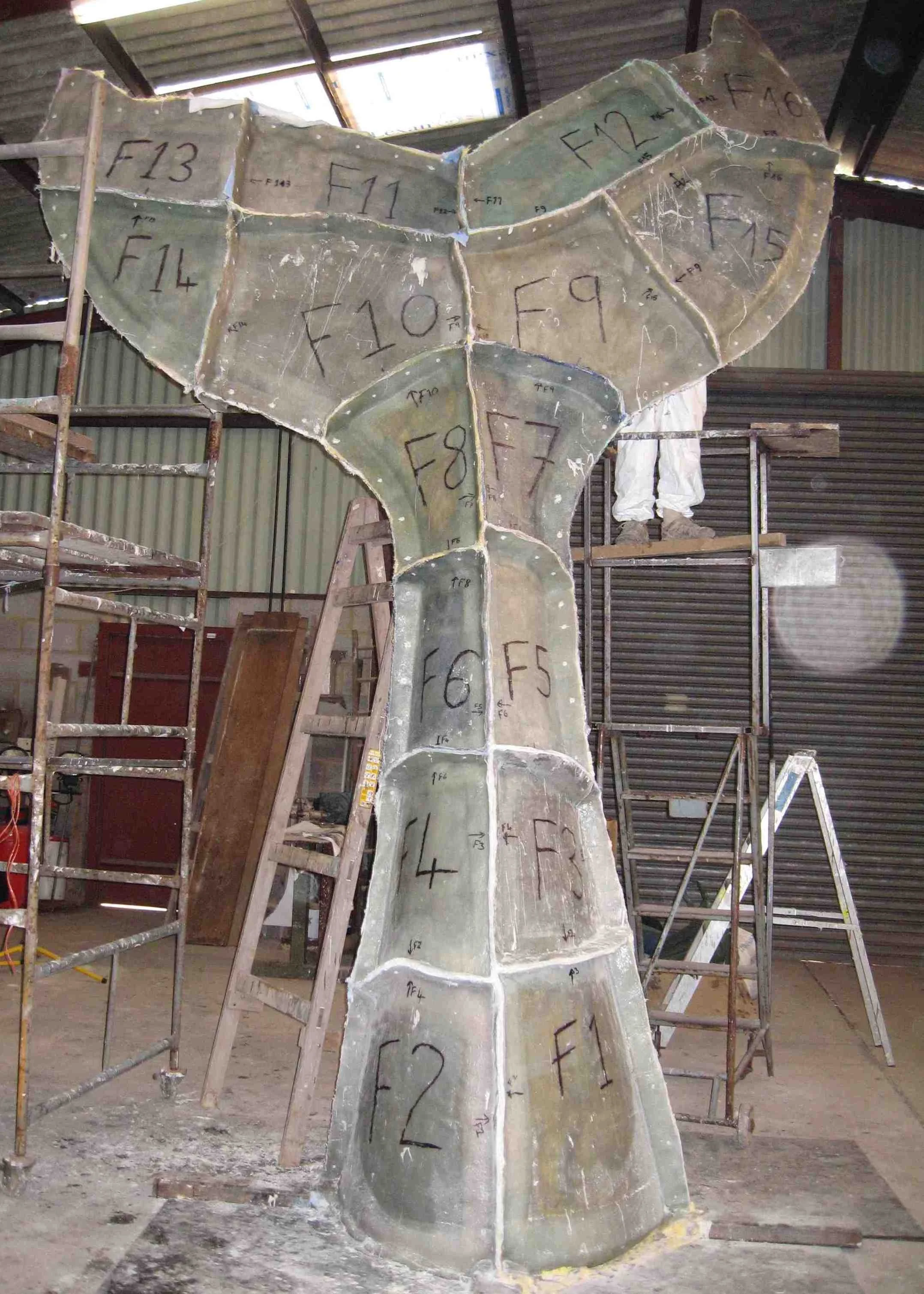 Large piece mould of Whale Tail using a towelling layer to connect silicon rubber and outer resin case.